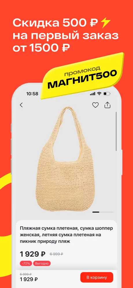 Откройте для себя новый уровень онлайн-шопинга с приложением «Магнит Маркет»! Это современная торговая площадка, где вы найдете тысячи товаров российского и китайского производства с бесплатной доставкой всего за сутки. Покупайте легко и выгодно без лишних хлопот и долгого ожидания посылок.